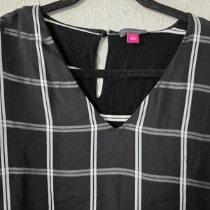 This Vince Camuto blouse is a must-have for any fashion-forward woman. The multicolor print on the mesh fabric adds a touch of elegance and bohemian vibe to the blouse. The long sleeves and relaxed fit make it perfect for any occasion, whether it's travel, casual outing, workwear, or business meeting. The blouse features a round neckline, button accents, and a high-low hemline that adds a modern touch to the classic tunic style.