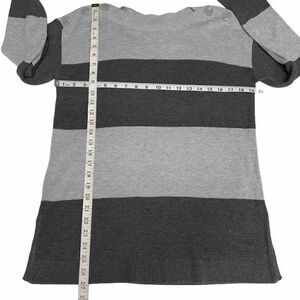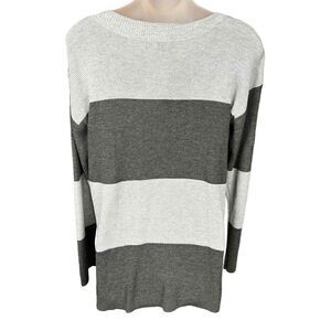 Vince Camuto Boat Neck Tunic Sweater Grey Stripe Color Block Side Slits Size Small