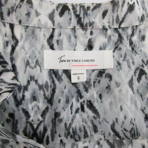 Vince Camuto Tura Tunic Top Sz Small Black White Blouse Short Sleeve Semi-Sheer