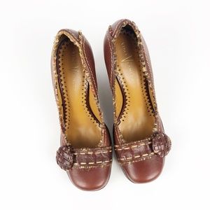 Vince Camuto wedges with tweed button detail. Size 8B. Some minor signs of wear on heels and some peeling inside, all pictured.