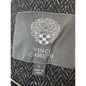 Vince Camuto Tweed Wool Gray/Black Peacoat Women's L Double-Breasted Outerwear