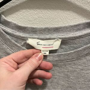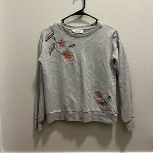 Keywords: Tees by Vince Camuto, floral sweatshirt, embroidered sweatshirt, gray sweatshirt, pullover sweatshirt, crew neck sweatshirt, long sleeve sweatshirt, casual top, womens sweatshirt, XXS, extra extra small, floral embroidery, lightweight sweatshirt