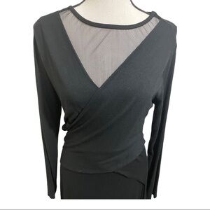 Vince Camuto V neck net style faux wrap dress Black size medium. Midi.