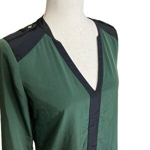 Vince Camuto V-Neck Long Sleeve Blouse. Green and Black. Size XS #1321