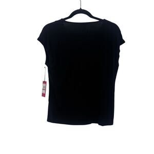 Vince Camuto V-Neck Short Sleeve Blouse Top Solid Rich Black Size XS NWT