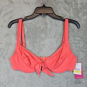 Vince Camuto V-Neck Tie-Front Bikini Top Womens Size M Pop Coral Beach Swim