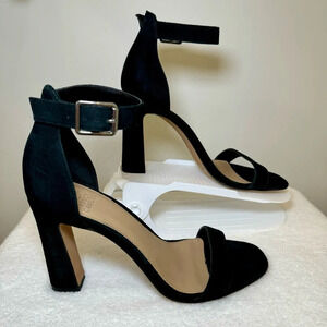 Vince Camuto VP-Acelyn Black suede ankle strap block heel sandals women’s 10