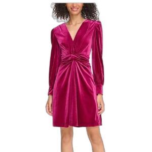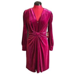 Vince Camuto Velvet Dress Women’s Size 8 Fuchsia Long Sleeve Twisted Waist NWT