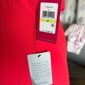 Chic sleeveless design. Perfect for day or night. Color is red/coral.