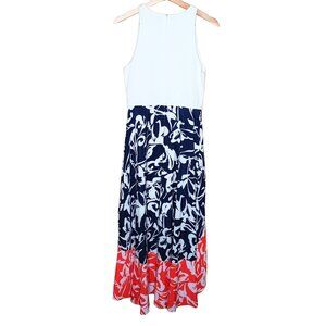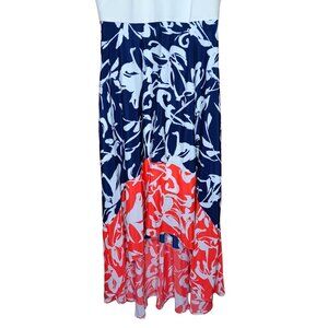 Vince Camuto Viscose Blend Hi Low Dress Navy Coral