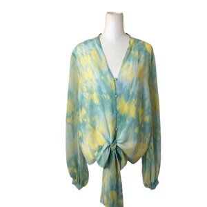 Vince Camuto Vivid Charm Green & Yellow Tie Dye Long Sleeve Blouse Size L