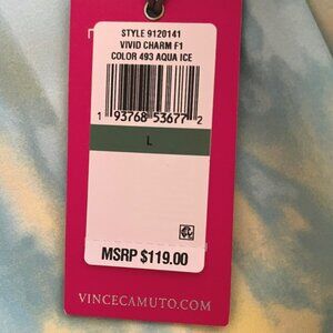 Vince Camuto Vivid Charm Green & Yellow Tie Dye Long Sleeve Blouse Size L NWT