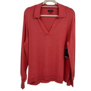Vince Camuto V-neck Collared Sweater Ocean Coral Size Large NWT