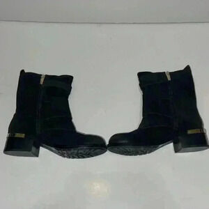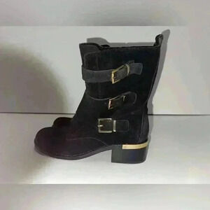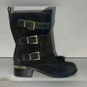 Vince Camuto Watcher Suede Mid Calf Motorcycle Boots Black Size 7 NWOT