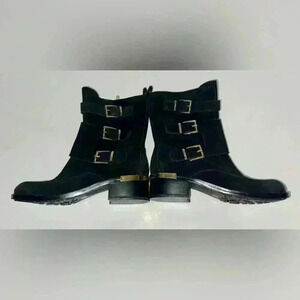 VINCE CAMUTO Suede black boots with gold buckle accents