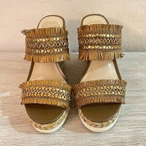 Vince Camuto Wedge Espadrille Sandals 6.5 Brittnuh Brown Gold Tan Slides