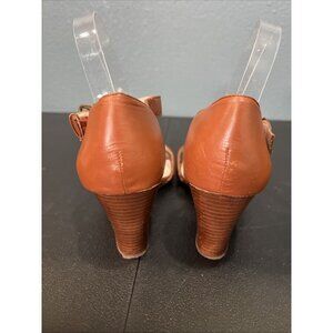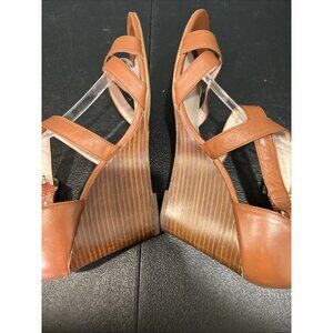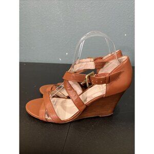 Vince Camuto Wedge Sandals Womens 8.5 Tan Leather Ankle Cross Strap 70s Resort