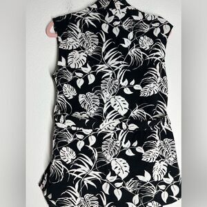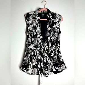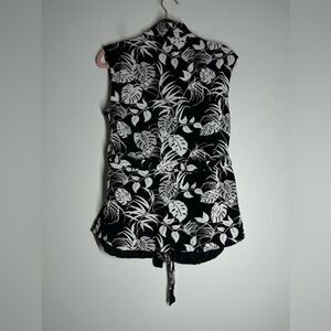 Vince Camuto White Black Tropical Print Belted Vest Size S