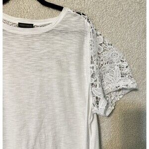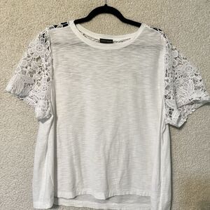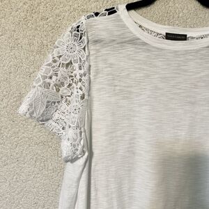 Vince Camuto White Blouse with Lace Sleeves XL Beachy