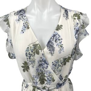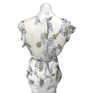 Vince Camuto White Floral Ruffle Sleeveless V-Neck Peplum Wrap Blouse Top Size M