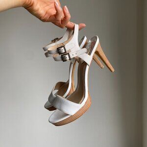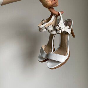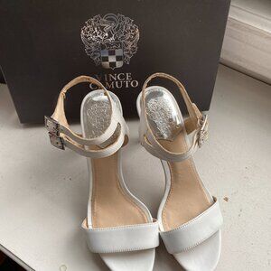#vincecamuto #danceshoes #weddingshoes #heeledsandals #anklestrap #formalheel #specialoccasion #ballroomshoes #dancingsandals #whitesandals