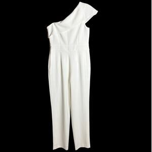 Vince Camuto White One Shoulder Fold Over Asymmetrical Jumpsuit Women’s Size 4