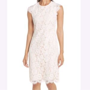Vince Camuto White lace short dress with nude lining.