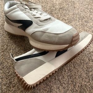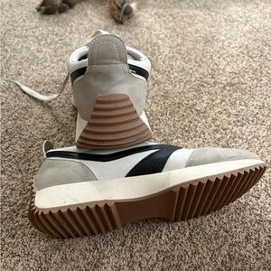 Chic Vince Camuto sneakers with a modern white and black design. Perfect for casual outings.