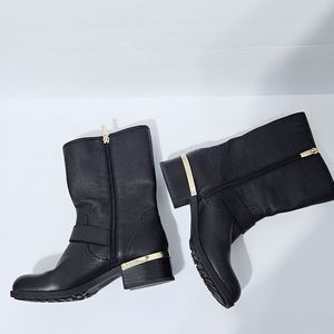 Vince Camuto Whyla Moto Black Leather Boots Size 6.5