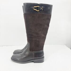 Vince Camuto Wide Calf Leather Riding Boots Andalian 7.5 Coffee Bean Suede NWB