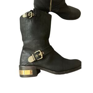 Diversify your chilly weather wardrobe with the Winchell bootie from Vince Camuto. This leather pair sports goldtone metal detailing for a sharp touch.