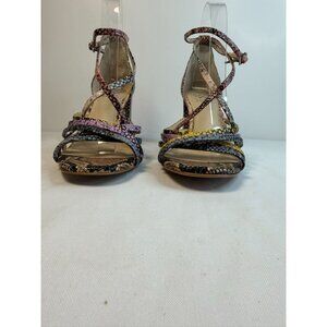Vince Camuto Winivey Sandal Women Size 7.5 Multicolor Snake Print Chunky Heel