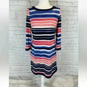 Vince Camuto Woman’s 8 Navy Blue Pink White Watercolor Stripe Dress Back Zipper