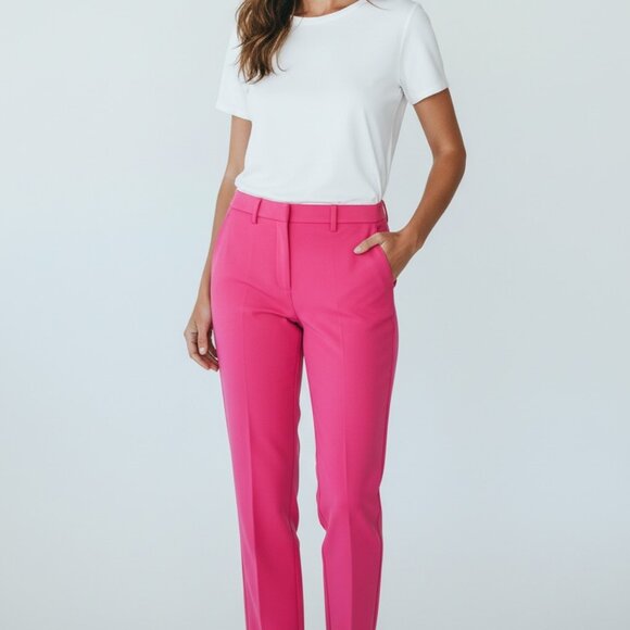 Designer women’s dress pants in vibrant pink from a trusted fashion brand.