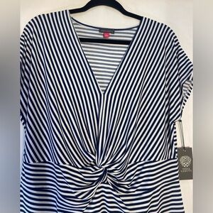 Vince Camuto Woman’s Twist Knit Top Blue White Stripe Size Large
