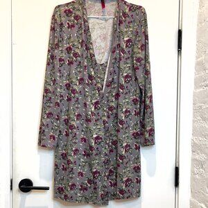 Vince Camuto Women 2 Pieces Floral Print Night Dress And Robe Sleepwear Set