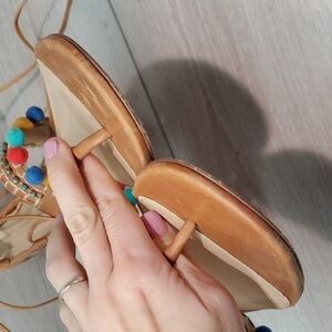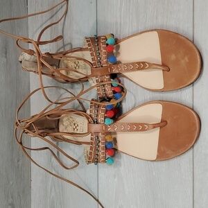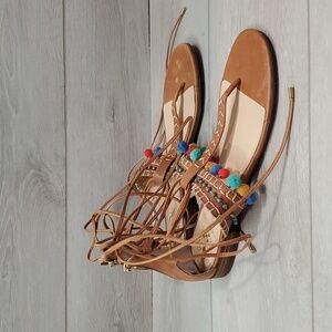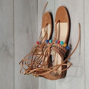 Vince Camuto Women Balisa Pom Pom Zip Gladiator Lace Up Sandals Flats shoes 10M