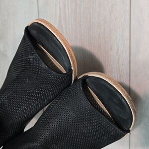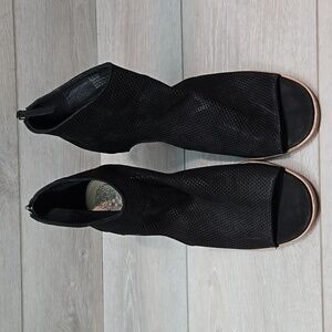 Step out in style with these chic black peep-toe ankle boots. Perfect for any occasion, they offer both comfort and elegance.