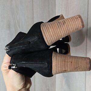 Vince Camuto Women Bevina Black Ankle Leather Peep-Toe Ankle Boots Shoes 10