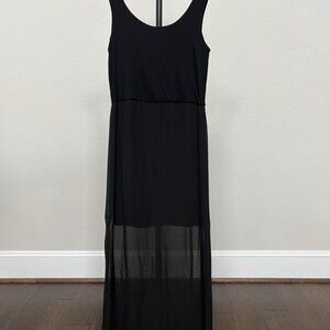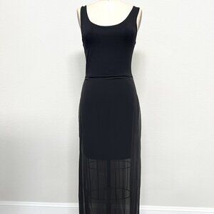 Vince Camuto Women Black Maxi Dress Small Knit Tank Sleeveless Semi Sheer Skirt