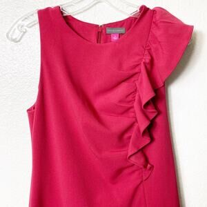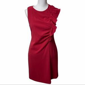 Vince Camuto Women Claret Red Asymmetrical Ruched Ruffle Sheath Dress 6
