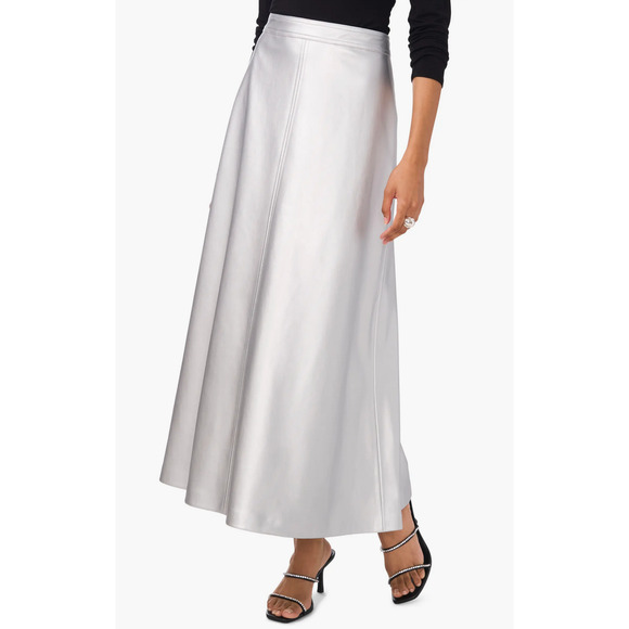 Vince Camuto Women Faux Leather A-Line Skirt Silver Size L