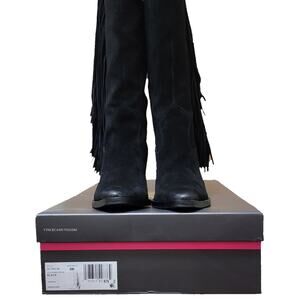 Vince Camuto Women Pelia Long Fringe Western Boots Size US 8M Black Suede