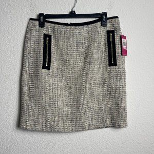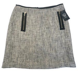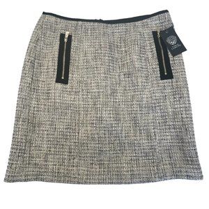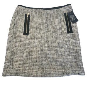 Vince Camuto Women Tweed Lined Black Gold White Zip Pocket Mini Skirt Size 6 NWT