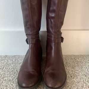 Vince Camuto Women leather boots. Sz. 9. Color Brown. Buckle on side. Slip on. Good condition