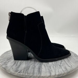 Vince Camuto Womens 8.5 Booties Black Suede Gwelona Block Heel Back Zip Boots
