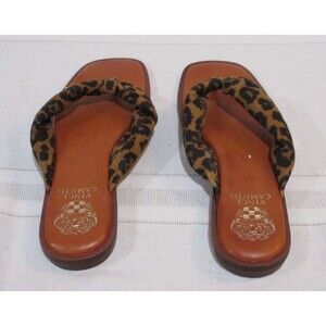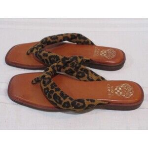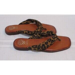 Vince Camuto Womens 8M Brown/Black Leopard Print Thong Flip Flops