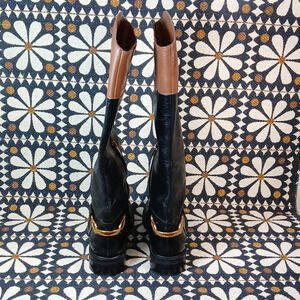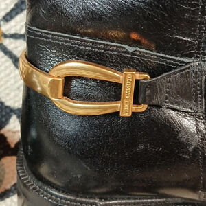 Knee high shaft, detailed harness, embossed Vince Camuto crest
