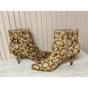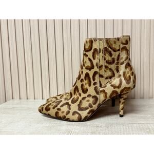Vince Camuto Womens Ambind Ankle Boots Stiletto Cow Hair Leopard Zip Up 8M