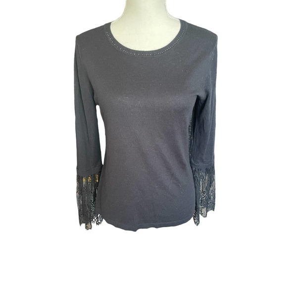 Vince Camuto Womens Beaded Crew Neck Sweatshirt Long Sleeve Size S Black